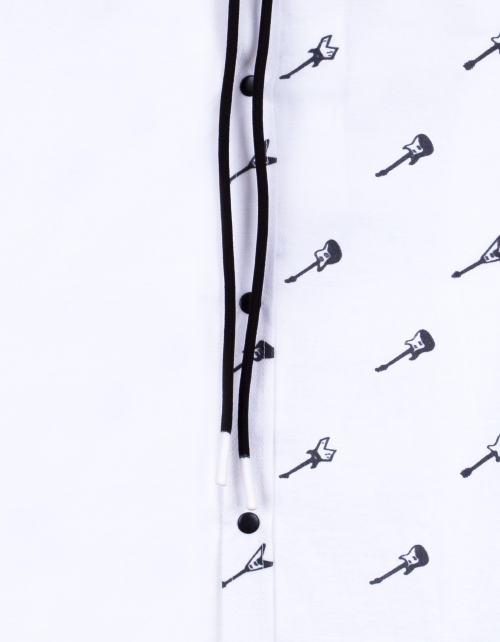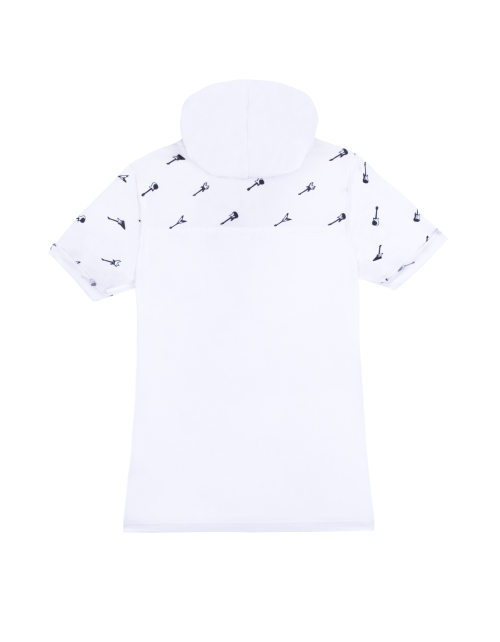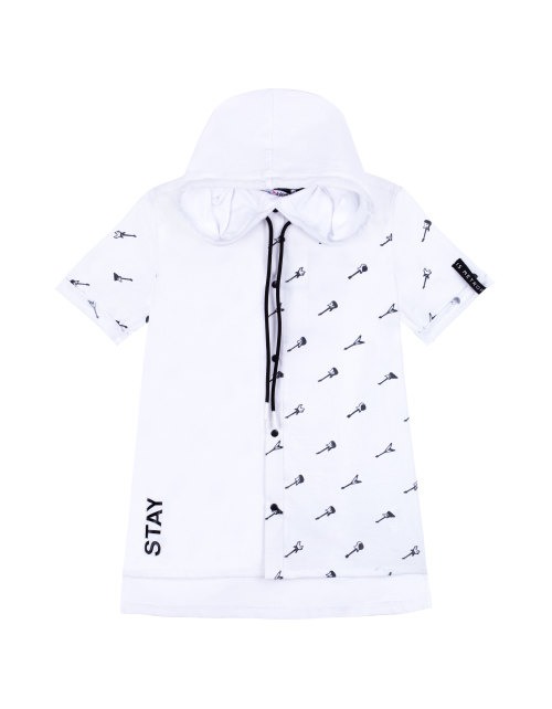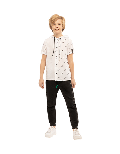 Верхняя сорочка с капюшоном для мальчика. Свободный крой, центральная застежка на книпперах. Отвороты по низу рукавов. Дизайнерское оформление в стилистике капсулы "Мегаполис".