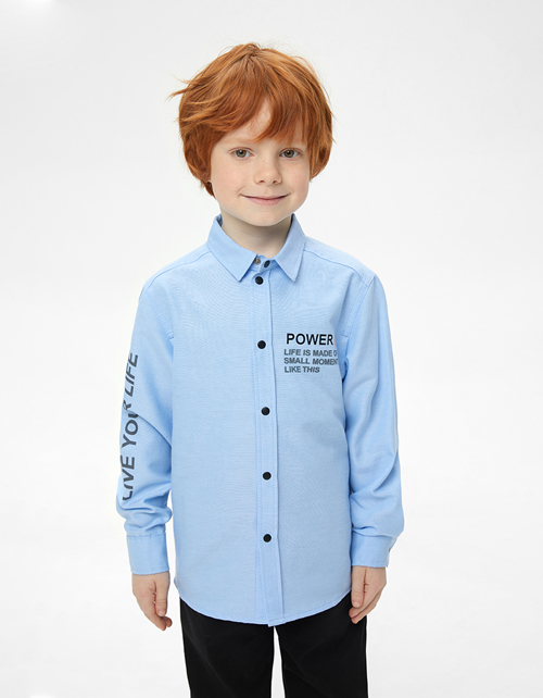 Светло-голубая рубашка прямого силуэта. Модель из сорочечной ткани с застёжкой на кнопки. Оригинальный дизайн позволяет гармонично вписать изделие одновременно в нарядный и базовый гардероб.