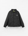 Куртка чёрного цвета на гипоаллергенном синтепоне. Прямой силуэт из матовой плащевой ткани с контрастной нейлоновой подкладкой. Регулировка по низу, прорезные карманы. Кнопки с soft-touch покрытием, декор - термотрансферная плёнка. Рекомендовано от +5.