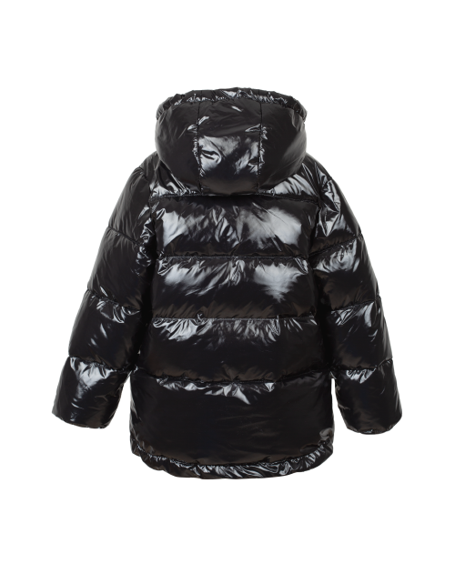 Куртка для мальчика на синтепухе прямого силуэта дополнена капюшоном с высоким воротником, манжетами на рукавах, застежкой молнией и небольшой нашивкой на груди. Ткань плащевая таффета с виниловым покрытием не пропускает влагу и имеет характерный блеск.