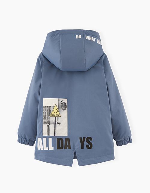 Весенняя куртка-парка для мальчика. Модель прямого силуэта с WR-пропиткой, и наполнителем синтепоном, гарантирующим комфорт в непогоду. Куртка декорирована цифровой печатью.