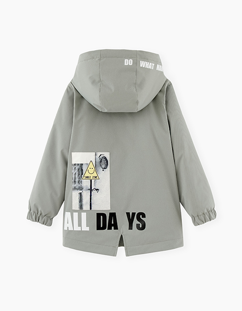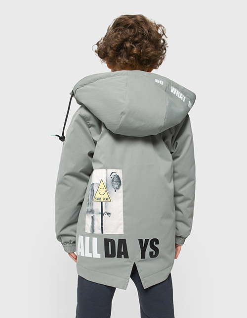 Весенняя куртка-парка для мальчика. Модель прямого силуэта с WR-пропиткой, и наполнителем синтепоном, гарантирующим комфорт в непогоду. Куртка декорирована цифровой печатью.
