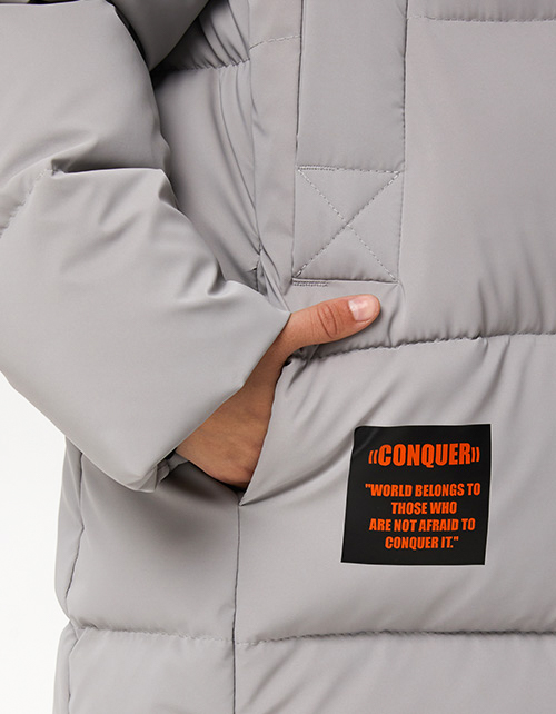 Пальто на гипоаллергенном синтепухе. Высокий воротник, переходящий в глубокий капюшон. 4 глубоких кармана, 2 - с подкладкой из флиса. Эластичные внутренние манжеты. Дышащая нейлоновая подкладка с дизайнерским принтом. Авторские лэйбы. Рекомендовано до -20