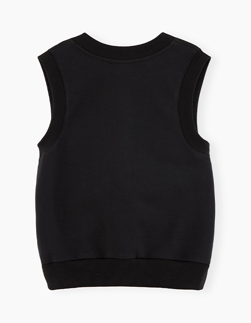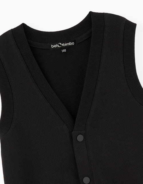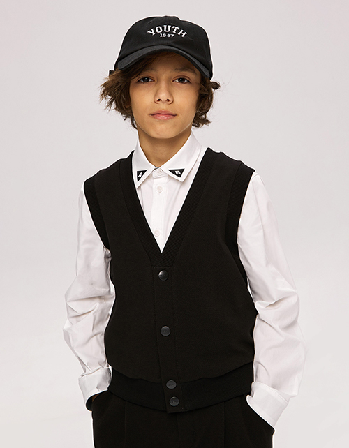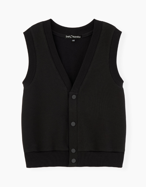 Стильный черный школьный жилет для мальчика. Функциональная модель с застежкой на кнопки. Отлично сочетается с сорочками из школьных коллекций.