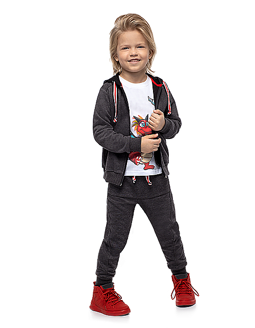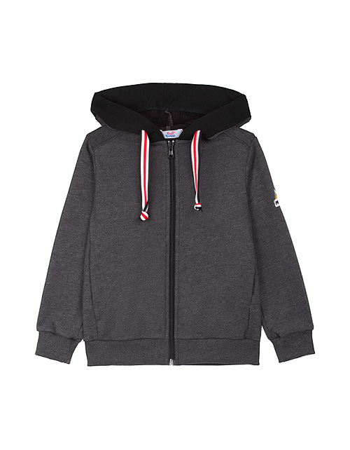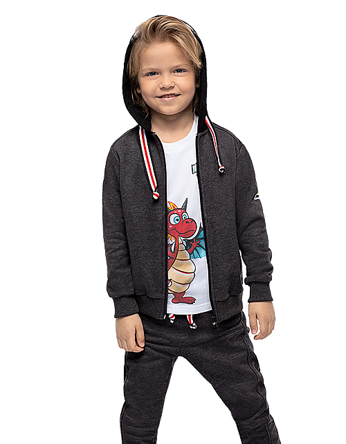 Жакет для мальчика свободного силуэта с капюшоном дополнен контрастным шнуром-затяжкой, манжетами на рукавах, застежкой молнией и стильным принтом. Трикотажная ткань футер гарантирует износостойкость изделия и комфорт в носке.