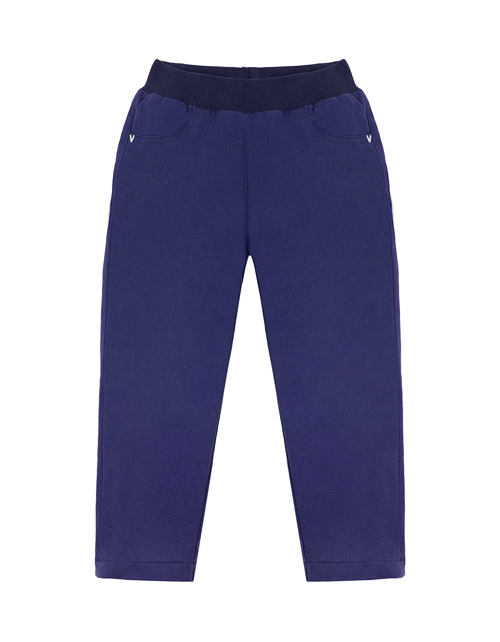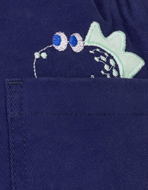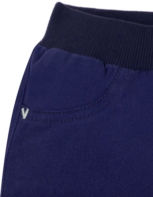 Спортивные брюки для мальчика свободного силуэта дополнены резинкой на поясе и накладным карманом на задней части изделия. Из кармана выглядывает принт в виде динозавра. Брюки пошиты из твила и имеют подклад из трикотажного полотна интерлок.