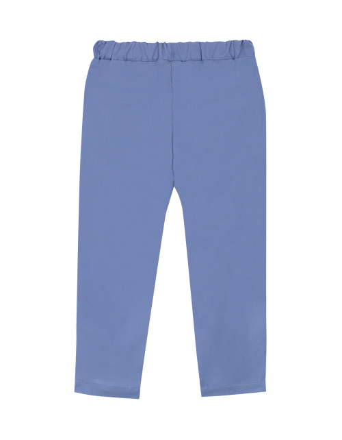 Брюки для девочки цвета деним на резинке. Зауженный книзу силуэт. Боковые карманы. Принт в стилистике капсулы "Нежный румянец".