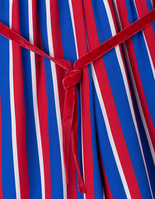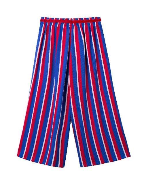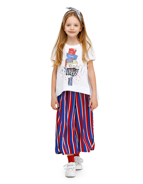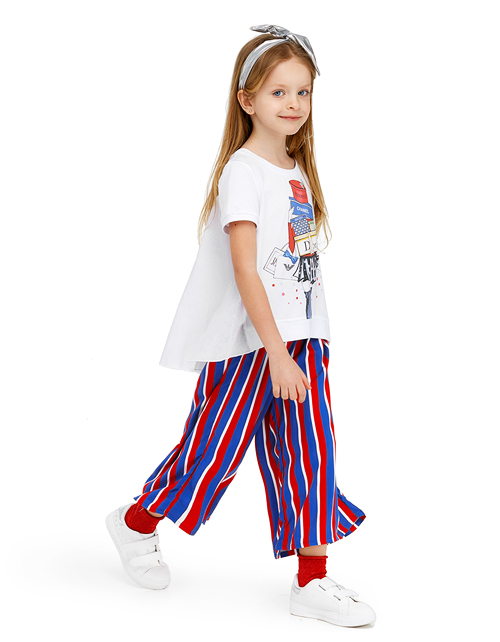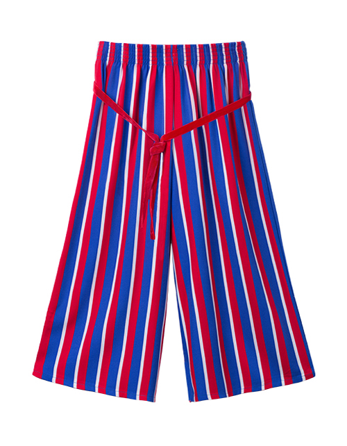 Яркие и свободные, эти брюки олицетворяют мечту о модной и комфортной одежде. Эффектная разноцветная полоска, актуальный силуэт и стильный декоративный пояс делают это изделие прекрасной основой для создания нового оригинального образа Вашей девочки