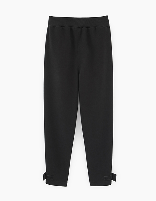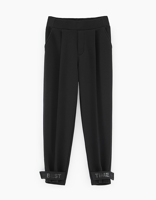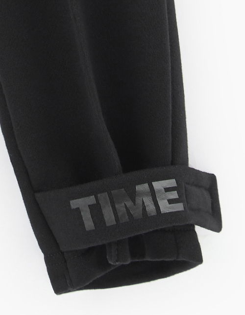 Стильные черные брюки-джоггеры для мальчика. Модель модной формы на эластичном поясе и с отворотами. Наклонные боковые карманы. Возможность регулировки по поясу.
