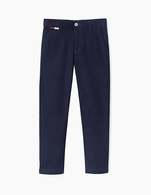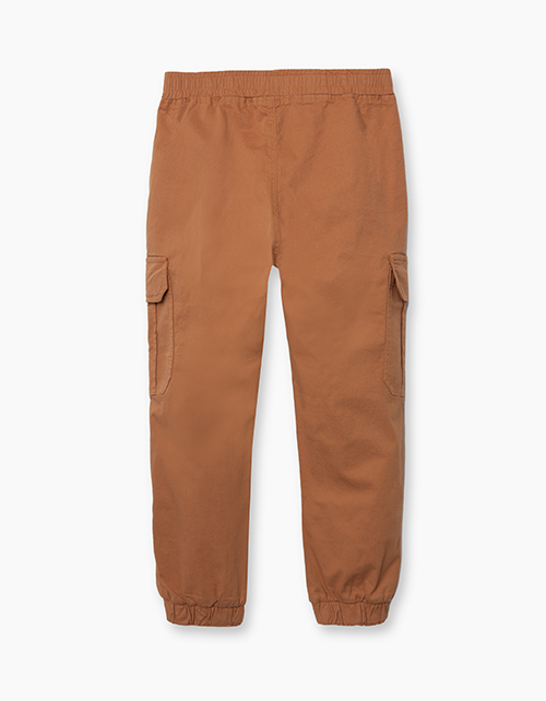 Брюки-джоггеры с манжетами на резинке для мальчика-подростка. Выполнены из твила песочного цвета. Комфортная посадка благодаря эластичной ленте в поясе. Два прорезных кармана и накладные карманы с клапанами делают модель функциональной и стильной.