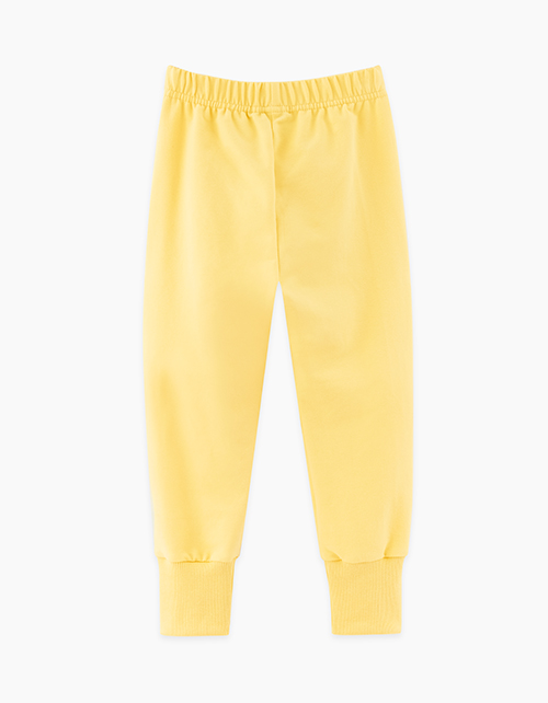 Светло-желтые брюки-джоггеры с эластичным поясом. Модель выполнена из мягкого футера с браш-эффектом.