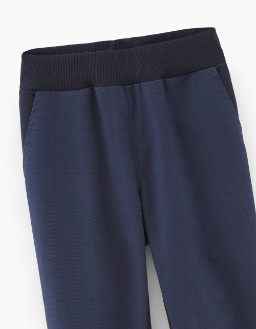 Стильные брюки-джоггеры для мальчика выполнены в трендовом оттенке "темный ирис". Комфортная модель на эластичном поясе с боковыми и накладными карманами.