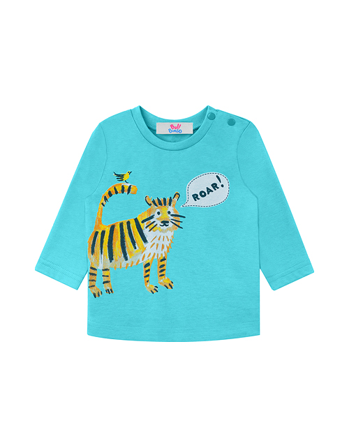 Яркая футболка с забавным принтом для юного модника! Удобные застёжки-кнопки позволяют быстро и без проблем одеть малыша. Натуральный материал и свободный силуэт обеспечат ему комфорт и отличное настроение