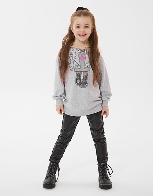 Удлиненное худи из комбинации цветов бежевого и серого меланжа. Модель декорирована нестандартным авторским принтом и стразами.