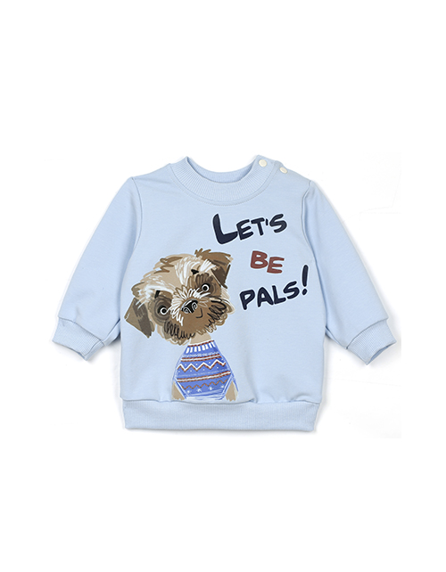 Джемпер для мальчика с собакой дополнен удобными манжетами на рукавах, круглым вырезом горловины и застежкой на кнопках на плече. Свободный силуэт гарантирует удобство в носке, а ткань футер - износостойкость изделия и приятные тактильные ощущения.