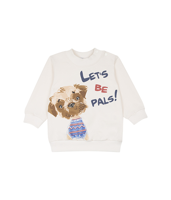 Джемпер для мальчика с собакой дополнен удобными манжетами на рукавах, круглым вырезом горловины и застежкой на кнопках на плече. Свободный силуэт гарантирует удобство в носке, а ткань футер - износостойкость изделия и приятные тактильные ощущения.