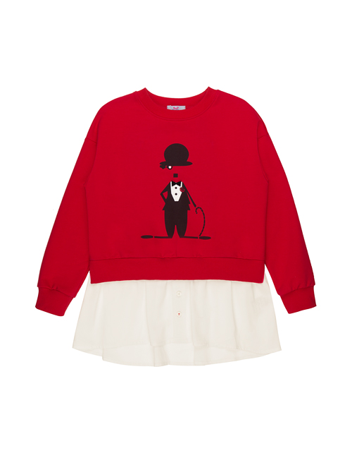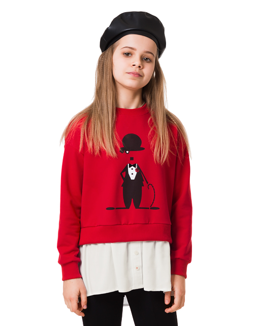 Для модной девочки яркий свитшот с имитацией трендовой многослойности. Ретро-стилистика, образ Чарли Чаплина отразились в виде объемного принта. Теплая и комфортная ткань, приспущенное плечо и дизайн оверсайз делают изделие оригинальным и комфортным.