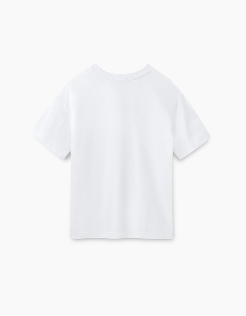 Белая удлиненная футболка с принтом для девочки