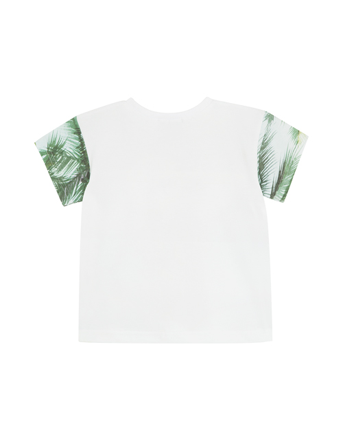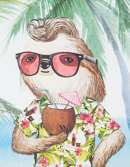 Вашему малышу очень понравится стильная футболка с весёлым принтом. Жизнерадостный ленивец, попивающий коктейль на экзотическом острове, позабавит маленького мальчика. Натуральная ткань подарит комфорт в течение дня