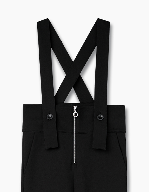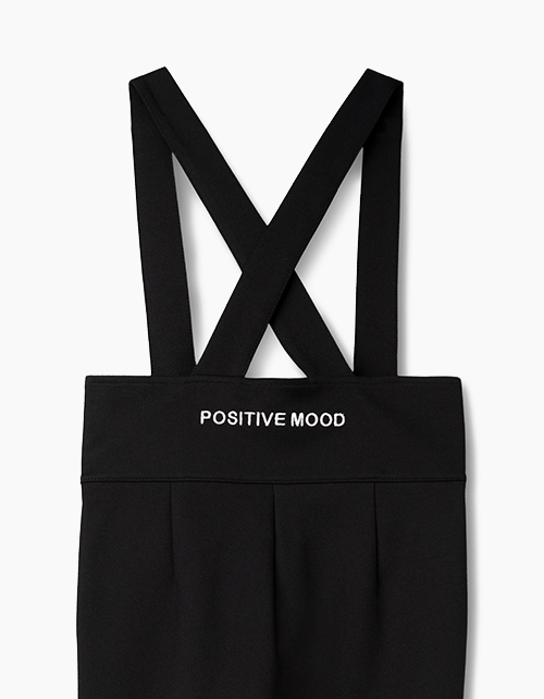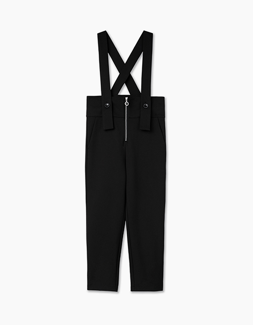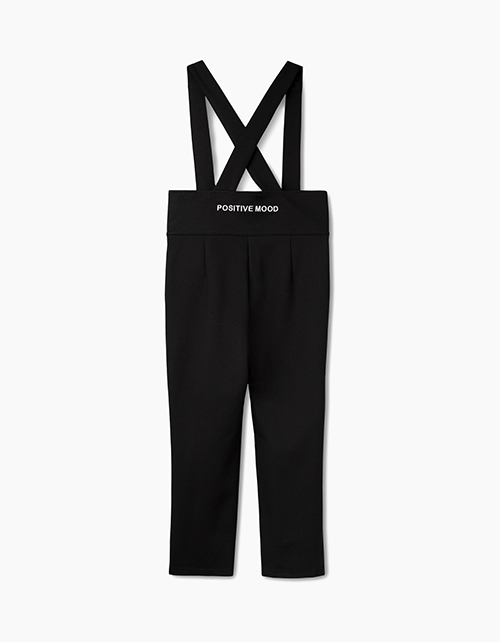 "Полукомбинезон из джерси для девочки-подростка. Свободного, зауженного книзу силуэта, с завышенной талией. Застежка на молнию спереди. Перекрещенные на спине лямки регулируются пуговицами. Вышивка по поясу на спинке.