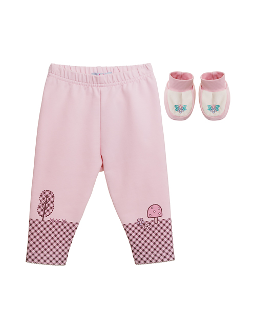 Нежный комплект из комфортных брюк и пинеток воплощает микротренд Kraft-уголок. Вышивка в виде цветочков ручной работы утопает в мягкости ворса вельбоа.Окутайте нежностью ножки вашей любимой малышки!