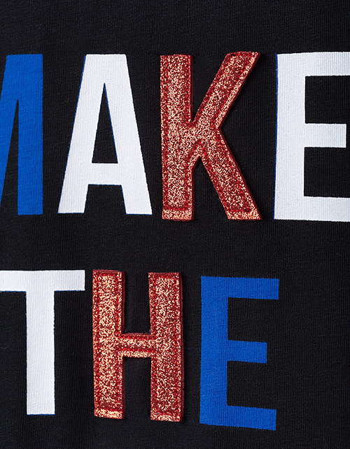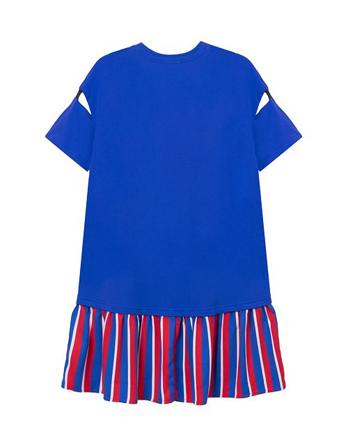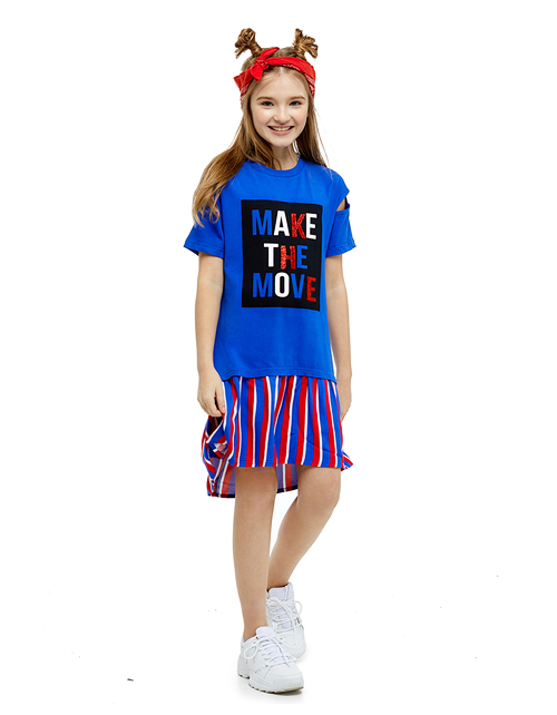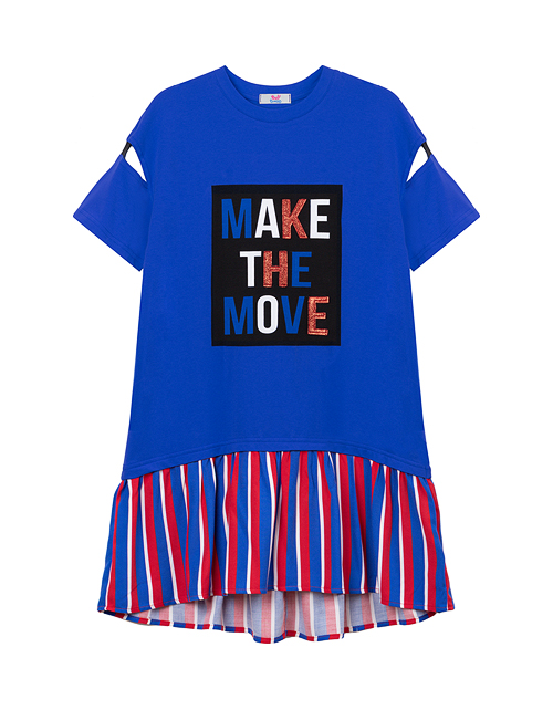 Невероятно стильное и комфортное платье свободного прямого силуэта с заниженной линией талии, напоминающее любимую удлинённую оверсайз футболку. Авторские акценты: трендовый графический принт с глиттерной аппликацией и разрезы на рукавах, скрепленные тесь