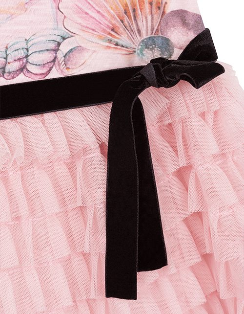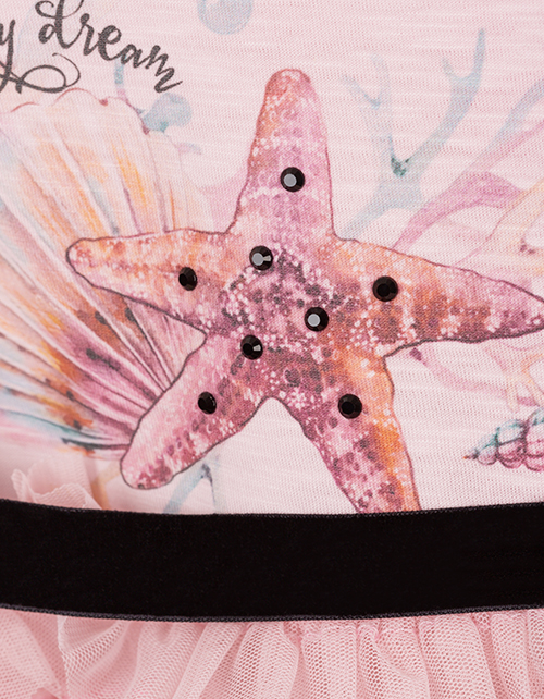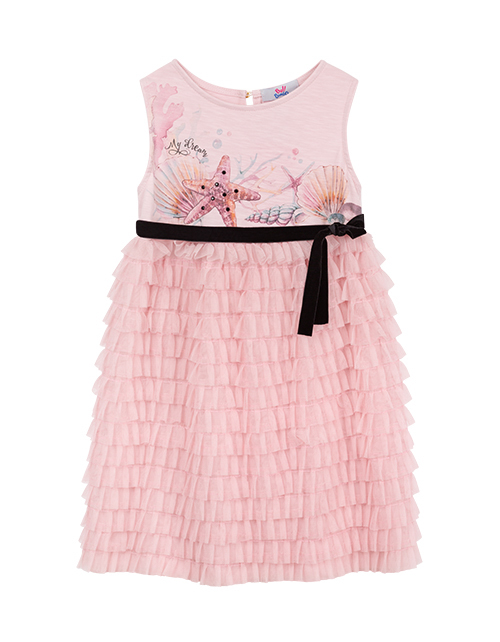 Нежное романтичное платье с воздушной игривой юбкой, превратит Вашу девочку в настоящую принцессу! Уникальность модели придаёт принт в морской тематике и сочетание фактур: мягкой ткани верха и лёгкого сетчатого полотна в рюши
