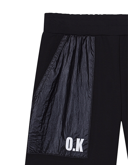 Черные шорты для мальчика на резинке. Карманы и лампасы. Дизайнерское оформление в стилистике капсулы "Уличный движ".