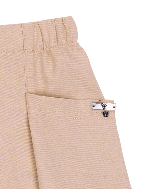 Бежевые шорты для девочки. Свободный силуэт с эластичной талией. Функциональные передние карманы. Декор в виде пришивных элементов. Оформление в стилистике капсулы "Цветочное сафари".