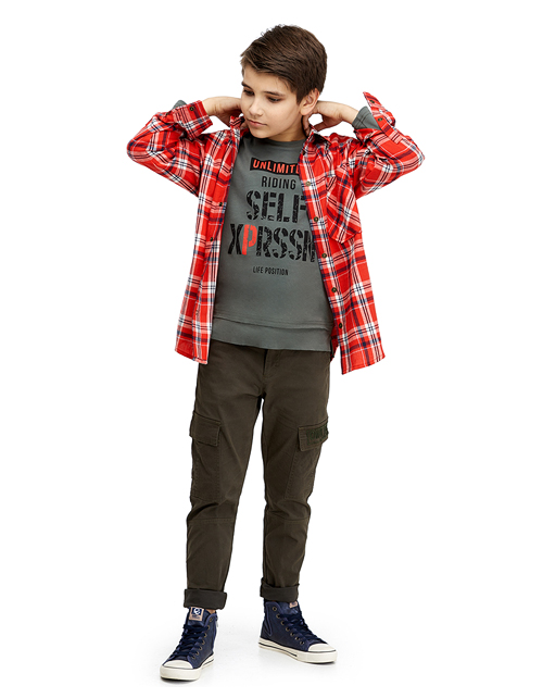 Яркая рубашка в клетку - самая необходимая вещь для стильного любителя приключений. Комфортная и стильная, она просто незаменима на каждый день! Дизайн модели дополнен модными акцентами: отделкой контрастной тканью и актуальными мотивационными надписями
