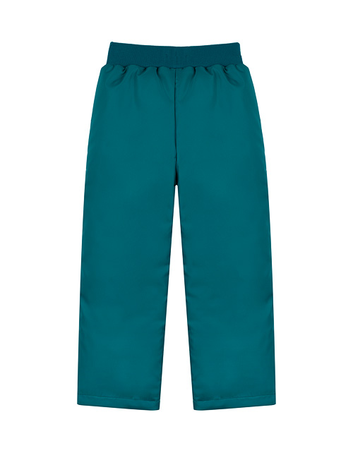 Брюки для девочки на синтепоне прямого силуэта дополнены широким поясом на резнике и небольшой нашивкой. Ткань матовая плащевая дьюспо не пропускает влагу, а подкладка из нейлона дарит дополнительный комфорт.