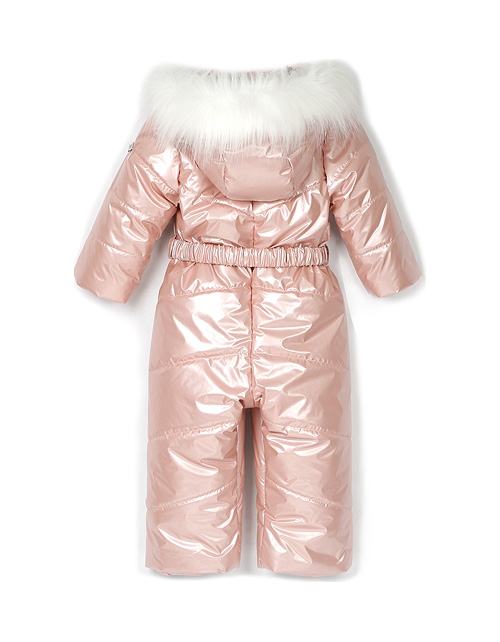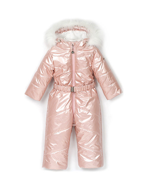 Розовый комбинезон для девочки дополнен капюшоном с меховой отделкой, молнией до паха и поясом на резинке. Плащевая ткань дьюспо с жемчужным покрытием не пропускает влагу, а трикотажная подкладка из 100% хлопка дарит приятные тактильные ощущения в носке.