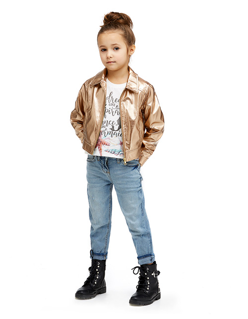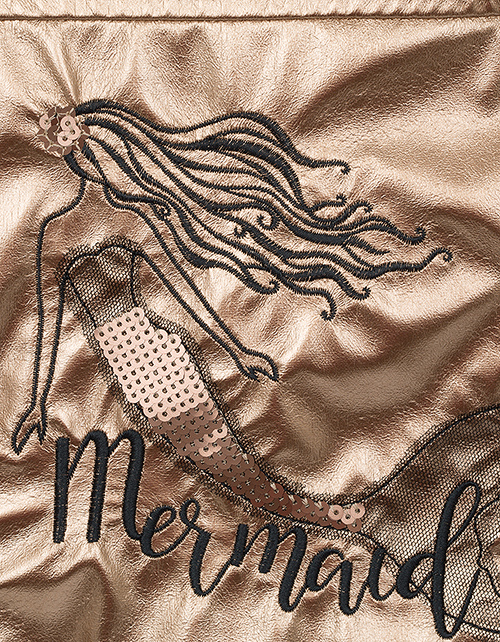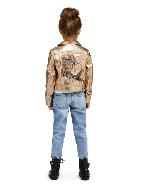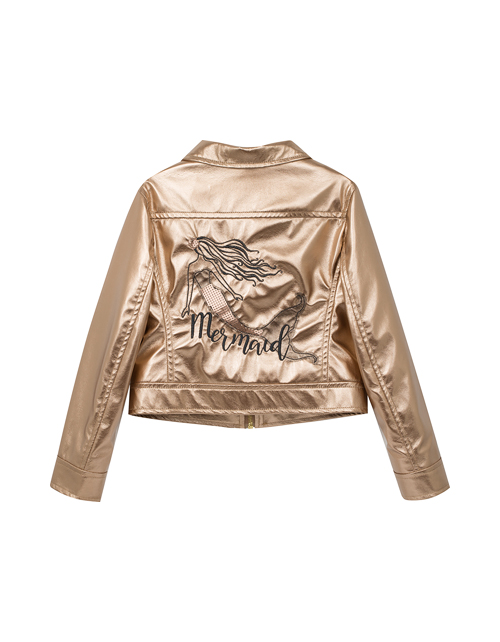 Модная сияющая куртка-косуха настолько великолепна, что её просто не захочется снимать! Удобный современный дизайн, блистательная трендовая расцветка металлик и прелестная авторская вышивка с русалочкой - сделают Вашу девочку самой счастливой и стильной