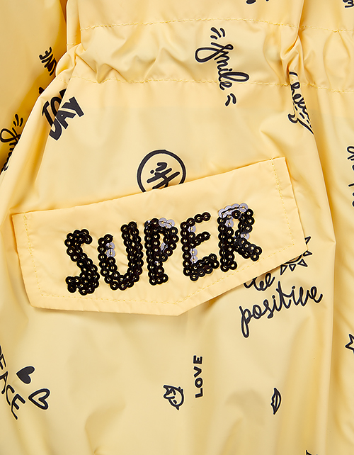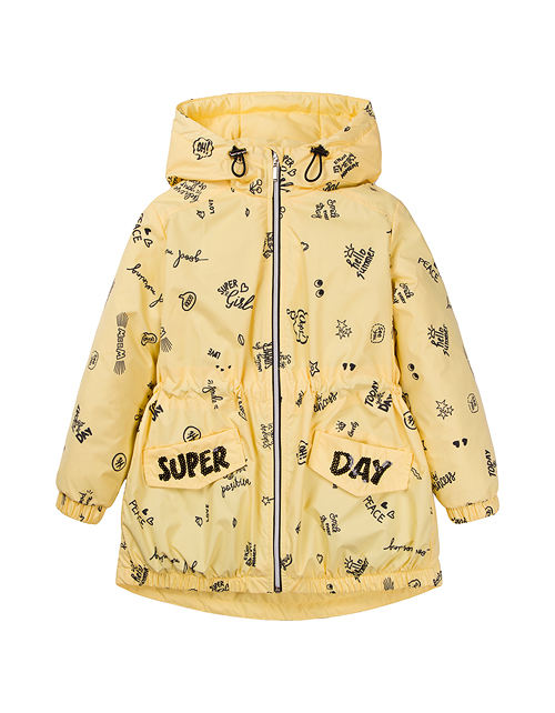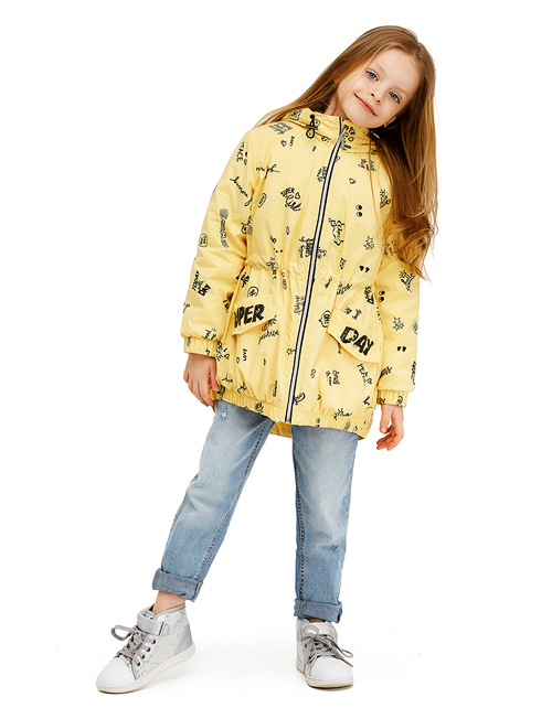 Модная куртка с актуальным графическим принтом для очаровательной девочки. Созданная из водоотталкивающей и легкой, "дышащей" ткани, она подарит комфорт. В ней можно гулять весь день, ведь эта современная стильная модель надежно защищает от ветра и дождя