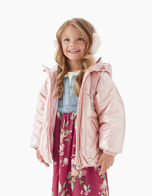 Розовая куртка для девочки дополнена удобным капюшоном, застежкой на молнии и манжетами на рукавах. Теплая куртка пошита из плащевой ткани дьюспо, не пропускающей влагу, а подклад выполнен из флиса и нейлона. В качестве утеплителя используется синтепон.