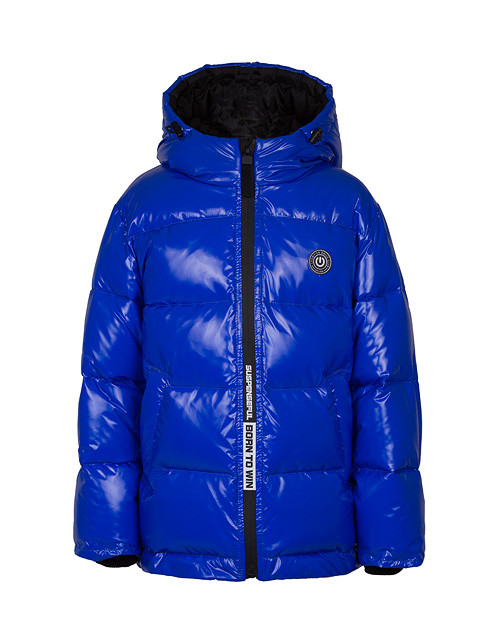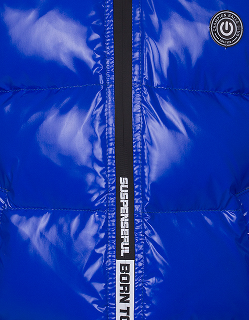 Куртка для мальчика на синтепухе прямого силуэта дополнена капюшоном с высоким воротником, манжетами на рукавах, застежкой молнией и небольшой нашивкой на груди. Ткань плащевая таффета с виниловым покрытием не пропускает влагу и имеет характерный блеск.