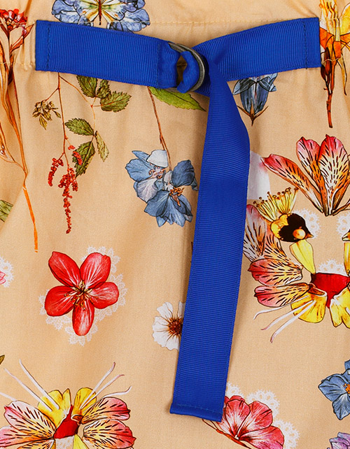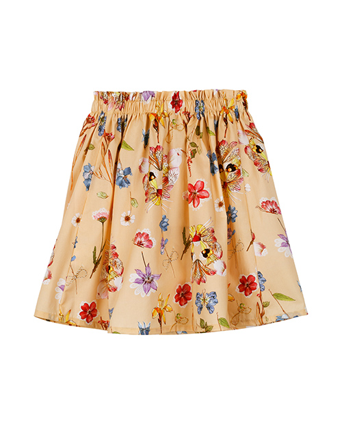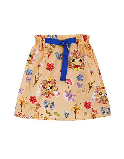Набивная юбка для девочки трапециевидного силуэта. Эластичная талия. Функциональный затягивающийся ремешок с полукольцами. Оформление в стилистике капсулы "Цветочное сафари".